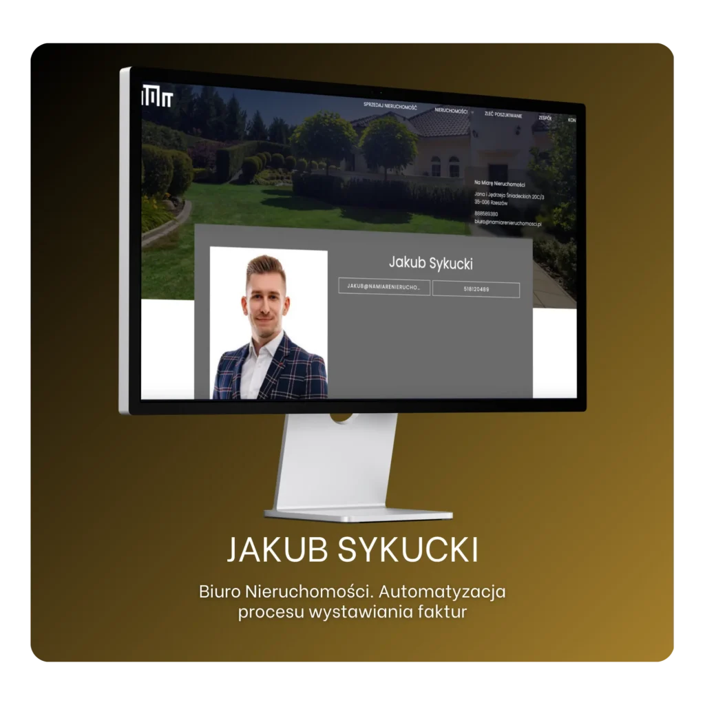 Dla Biura Nieruchomości wdrożyliśmy zaawansowaną automatyzację procesu fakturowania. Po wprowadzeniu danych klienta reszta wykonywana jest automatycznie — faktura jest tworzona, zatwierdzana i wysyłana do odbiorcy w ciągu kilku minut, bez konieczności ręcznej ingerencji.