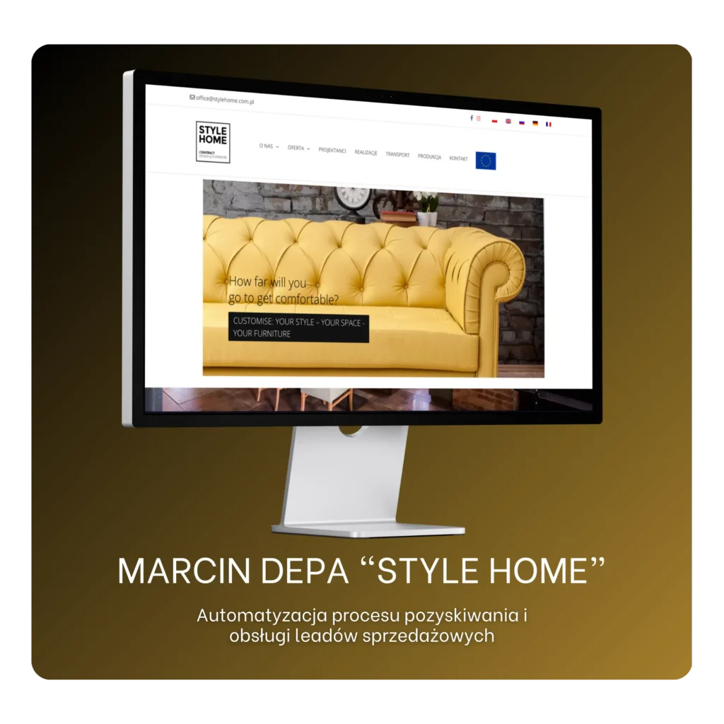 Style Home to firma specjalizująca się w wyposażeniu wnętrz oraz sprzedaży mebli premium, działająca zarówno w modelu B2B (dla architektów i deweloperów), jak i B2C (dla klientów indywidualnych).